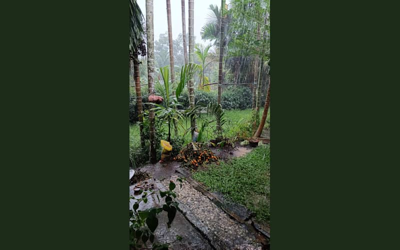 Sore hari selepas sholat ashar hujan kembali membasahi bumi dengan tidak segan, hujan yang cukup lebat membuat kegiatan sore menjadi dibatalkan yaitu membantu pembelahan pinang, walau tidak terjadi namun tetap dianggap selesai karena alam yang tidak menghendaki ehe π ini beberapa penampakan lebat-nya hujan yang hingga malam berlangsung (20.00 WIB)