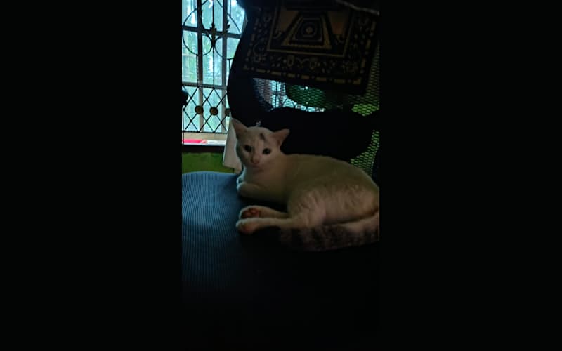 Kucing saya yang biasa di luar akhirnya mencoba tidur di dalam lebih tepatnya di kursi saya karena basah di luar wkwkkw