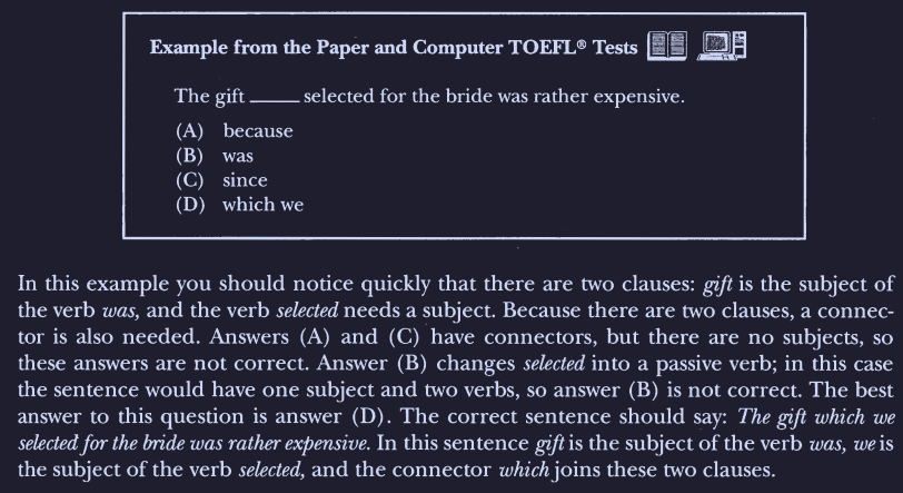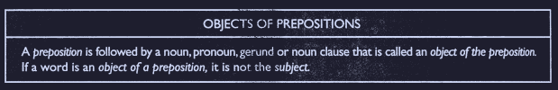 This sentence contains two objects of prepositions. Exams is the object of the preposition after, and boat is the object of the preposition by. An object of a preposition can cause confusion in structure questions on the TOEFL test because it can be mistaken for the subject of a sentence.