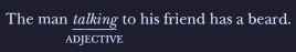 In this sentence talking is an adjective and not part of the verb because it is not accompanied by some form of be. The verb in this sentence is has. The following example shows how a present participle can be confused with the verb in structure questions on the TOEFL test.