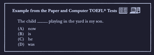 In this example, if you look at only the first words of the sentence, it appears that child is the subject and playing is part of the verb. If you think that playing is part of the verb, you might choose answer (B), is, or answer (D), was, to complete the verb. However, these two answers are incorrect because playing is not part of the verb. You should recognize that playing is a participial adjective rather than a verb because there is another verb in the sentence is. In this sentence there is a complete subject child and a complete verb is, so this sentence does not need another subject or verb. The best answer here is (A).